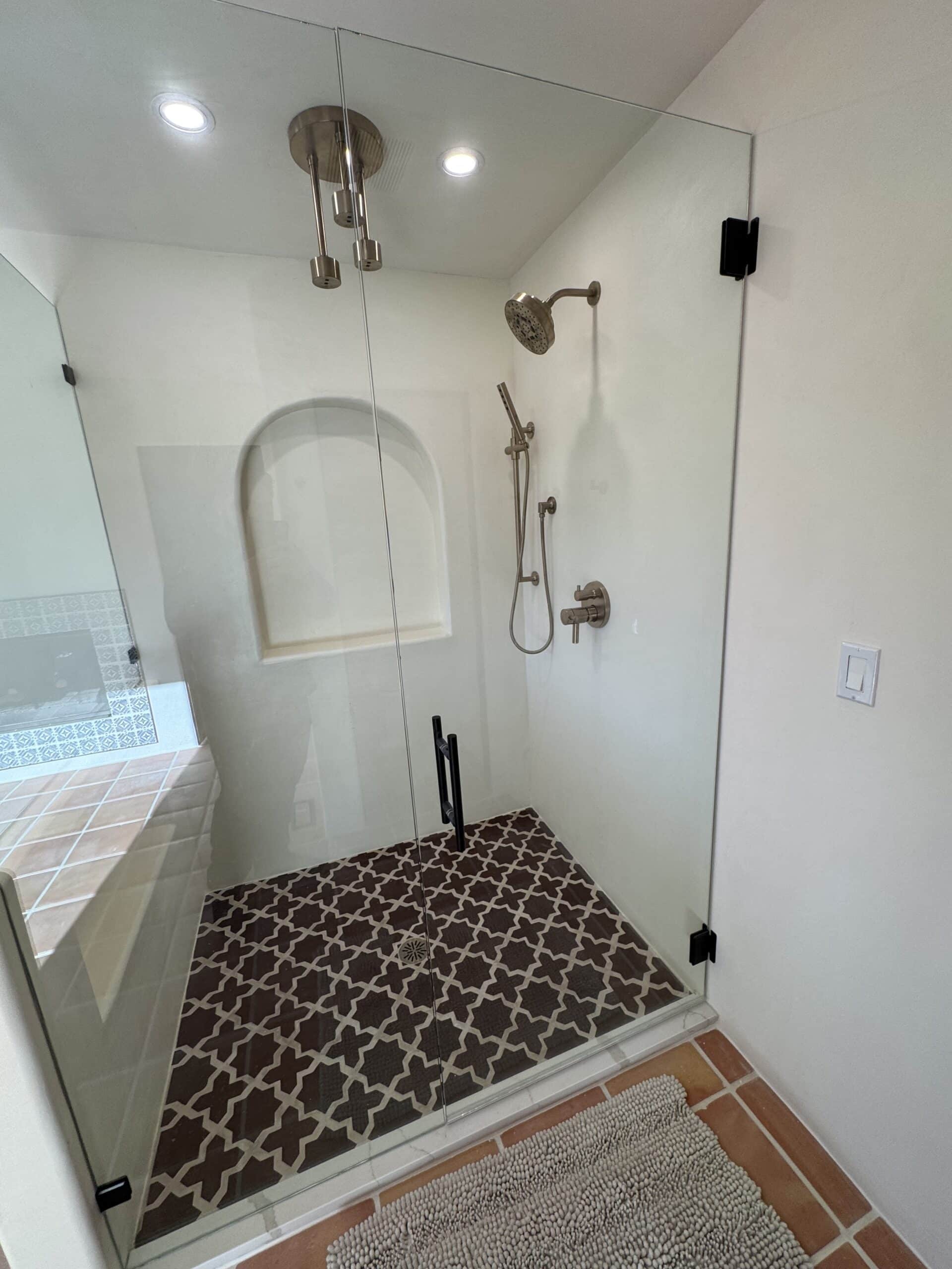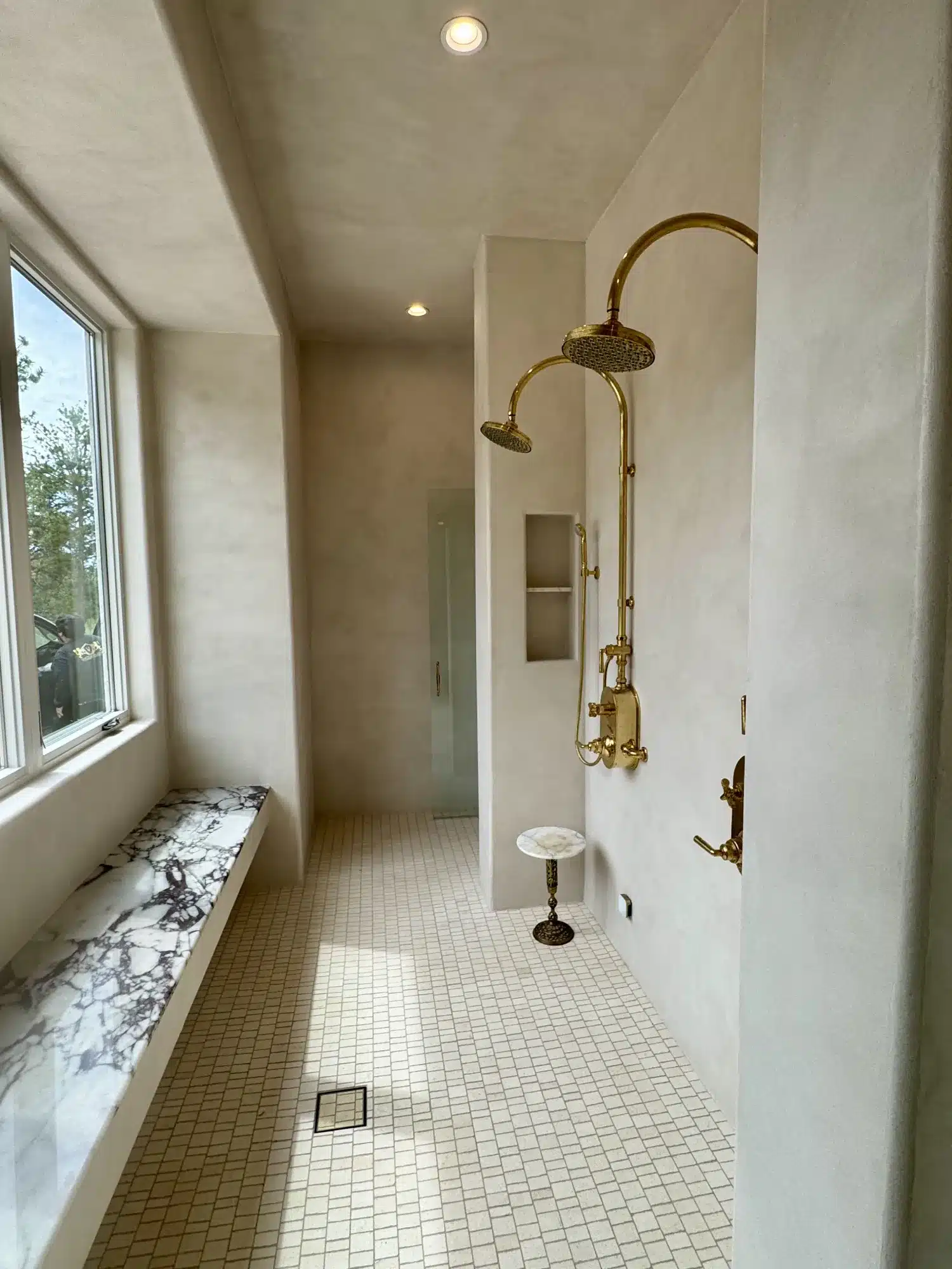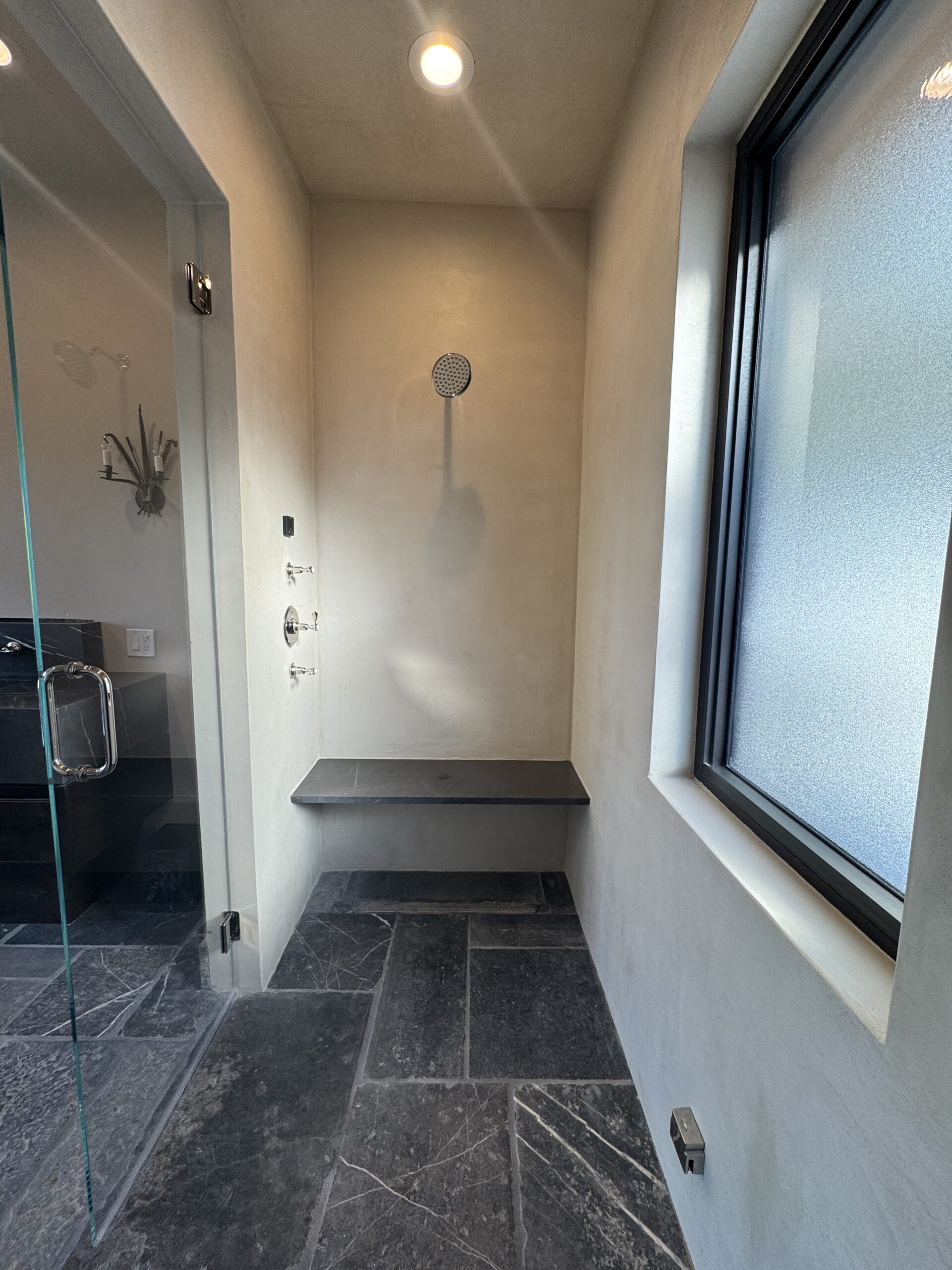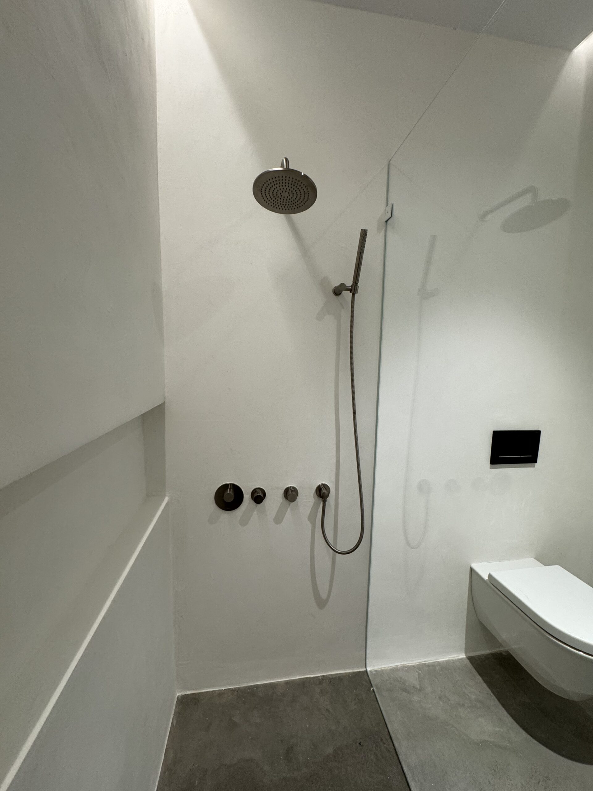 - Microcement shower walls